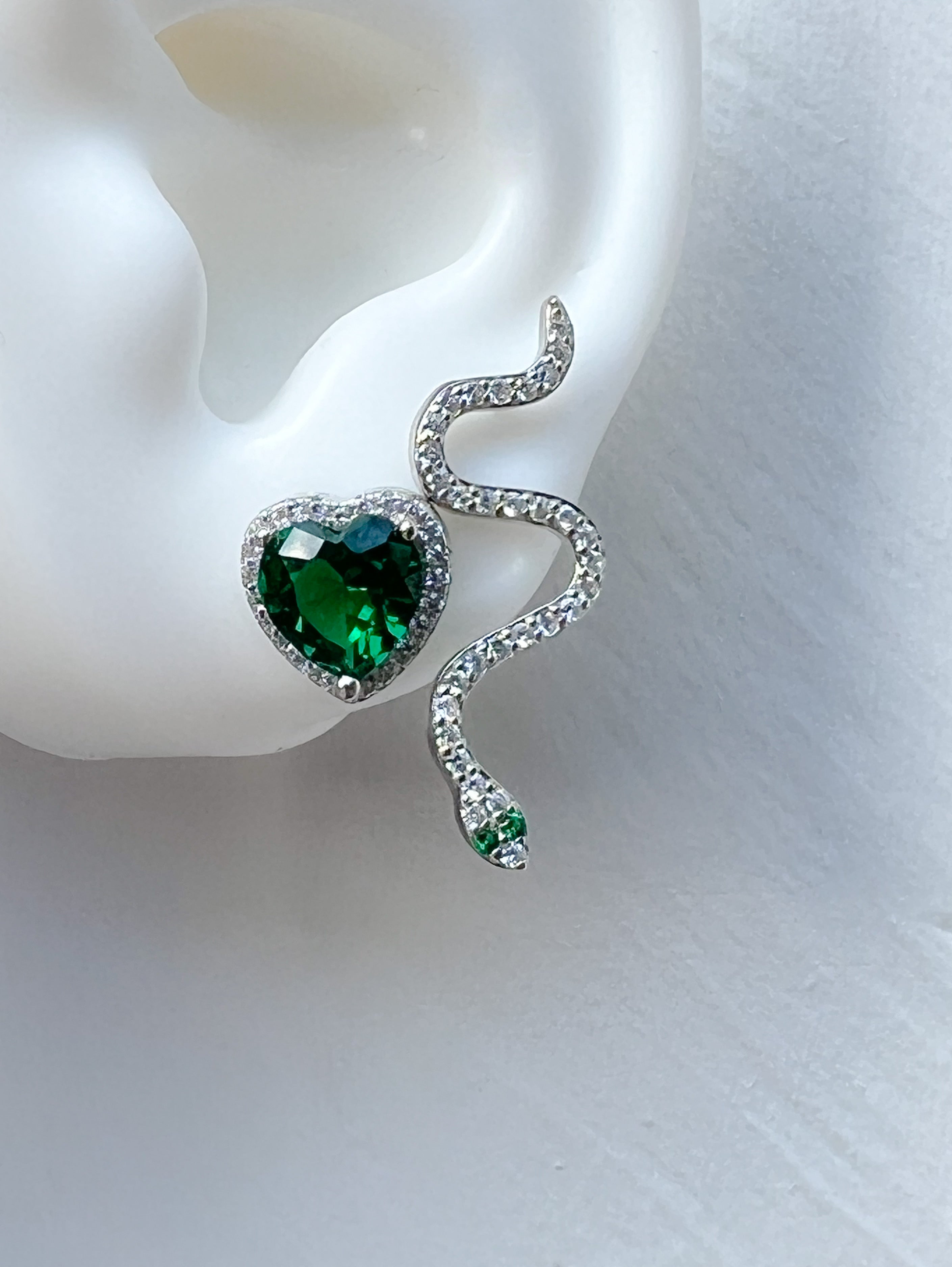 These earrings exude a captivating charm, a touch of romance and an enchanting emerald sparkle, allowing the wearer to carry a piece of magic wherever they go.
