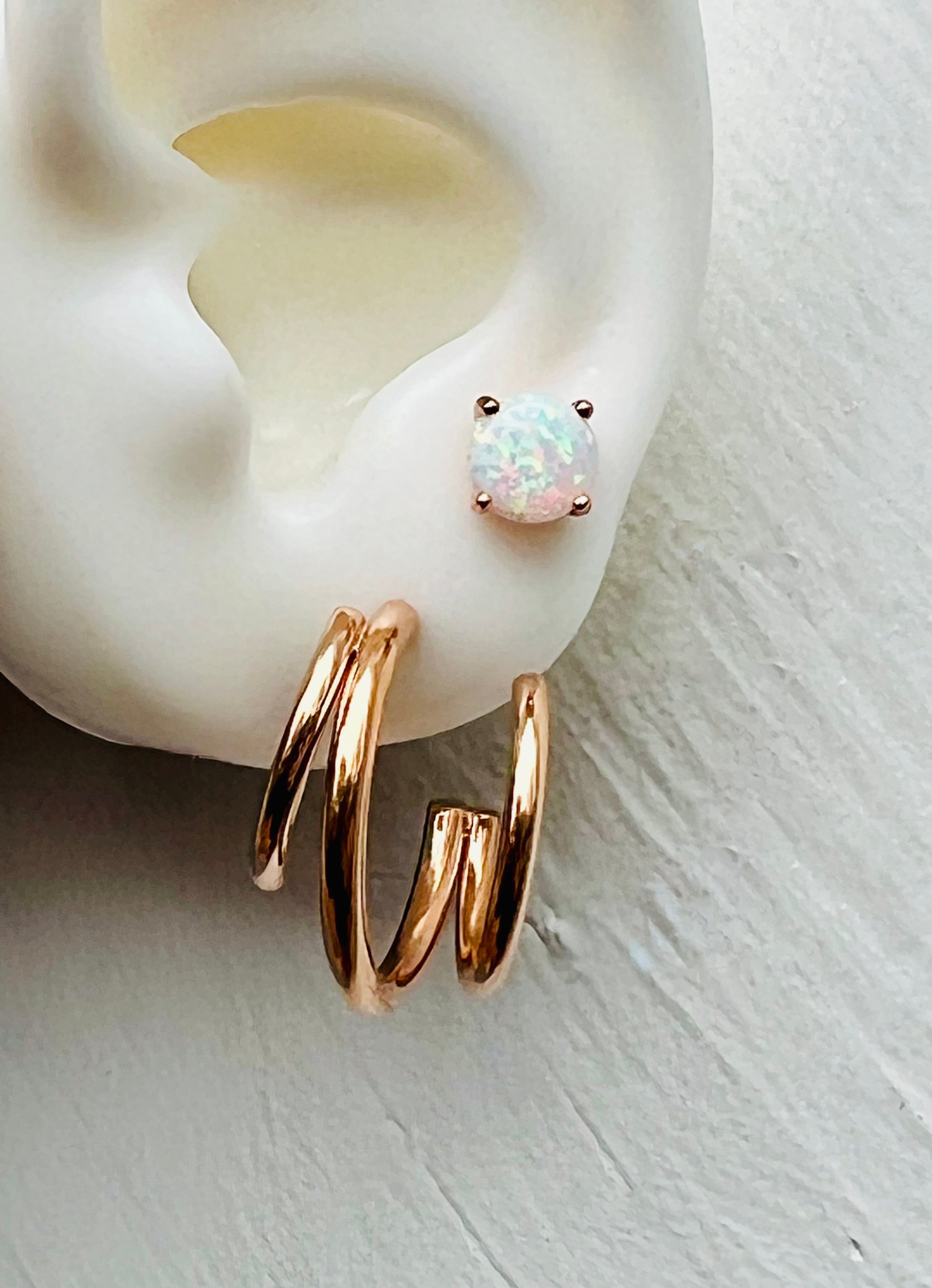 Crafted from sterling silver and bathed in a warm rose gold plating, these dazzling white opals are as versatile as they are vibrant. They are the perfect companions for anyone looking to sprinkle a little fun into their wardrobe.
